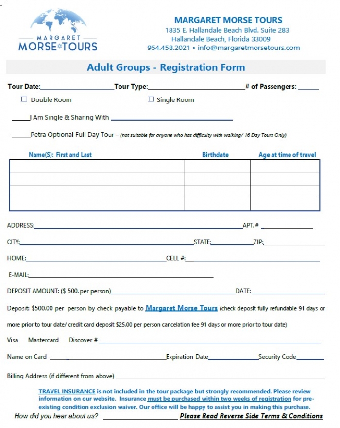 Adult Group Tours - Registration Form