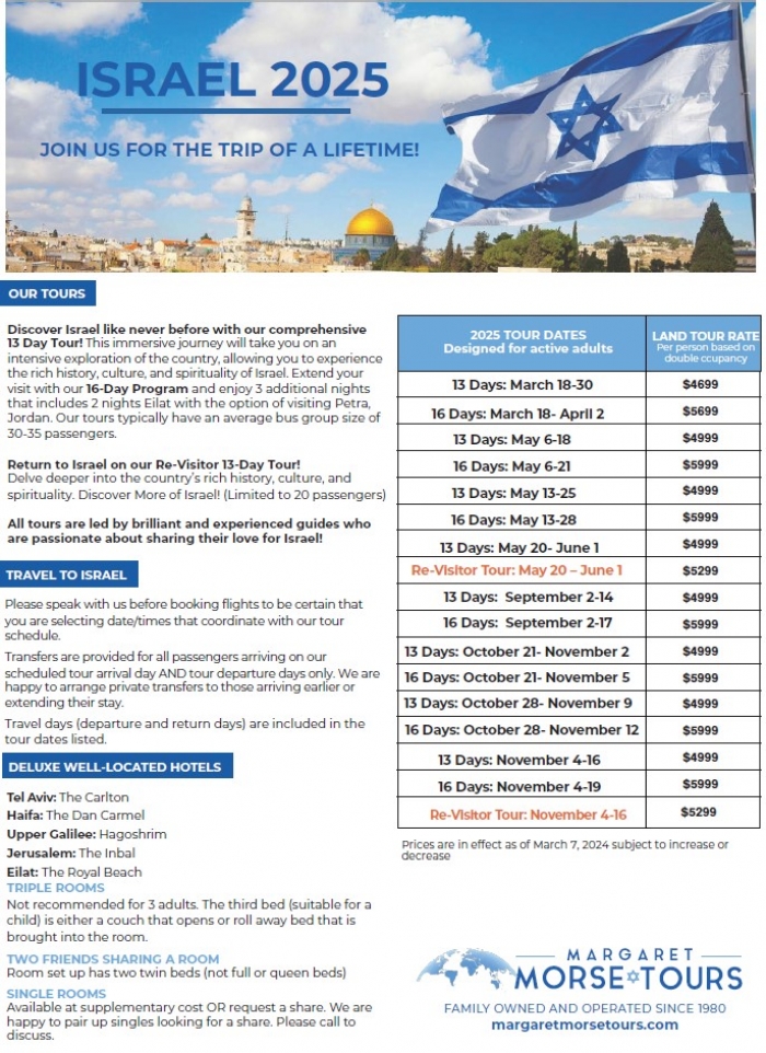 2025 Adult Group Tours Dates and Rates