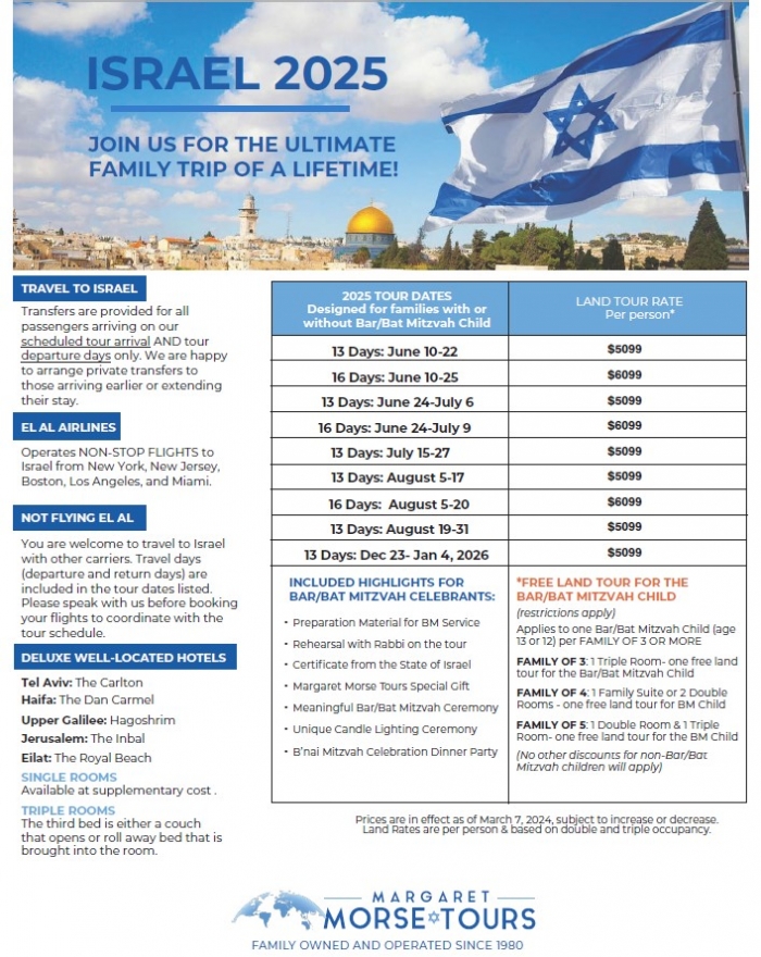 2025 Bar and Bat Mitzvah and Families - Dates and Rates
